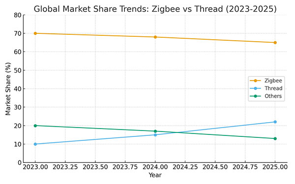 MarketsandMarkets reports that Zigbee continues to dominate commercial building automation and energy monitoring deployments in 2025, while Thread adoption is growing in consumer-focused products driven by Matter.