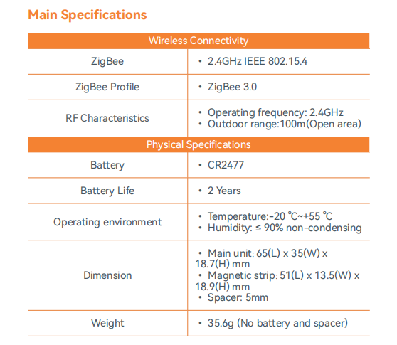 • OEM integration: serve as a reliable Zigbee door sensor component for security systems, smart home platforms, or IoT solutions