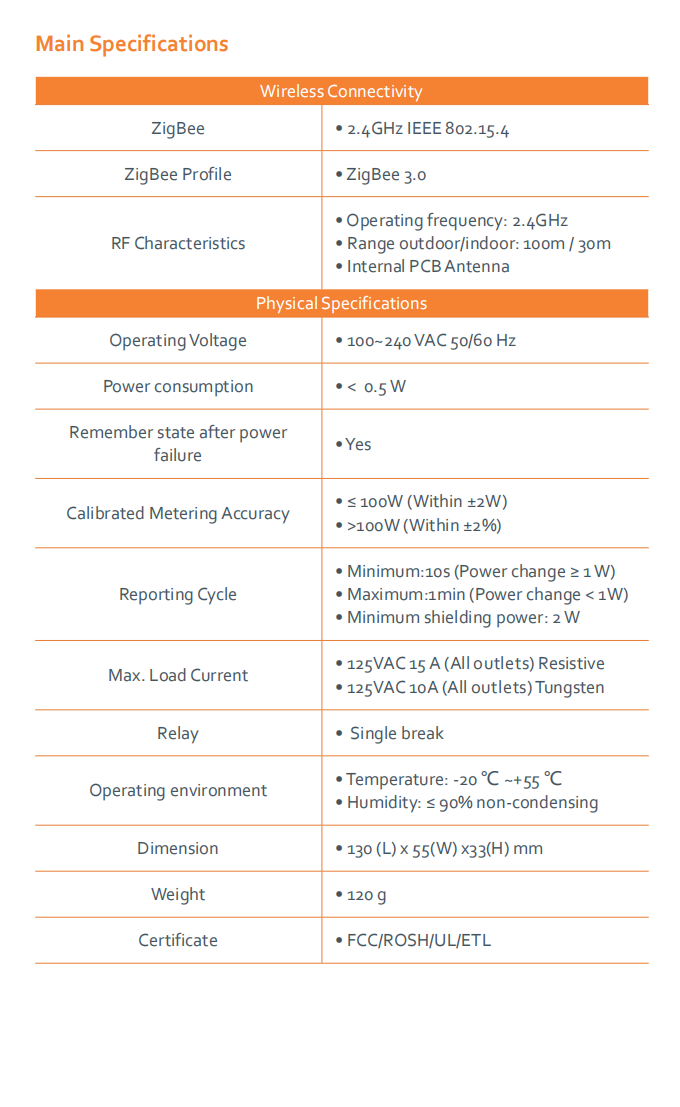 The WSP404 excels in various smart energy and home automation use cases: Residential energy management, enabling remote control and consumption monitoring of lamps, space heaters, fans, and window A/Cs Smart home automation via scheduling (e.g., timed operation of decorations or appliances) to optimize energy usage Multi-device control in compact spaces, supporting two appliances per plug without blocking adjacent outlets Strengthening ZigBee networks (30m indoor/100m outdoor range) as a mesh node, enhancing connectivity for other smart devices OEM components for energy solution providers offering smart plug upgrades in hospitality, rental properties, or residential complexes